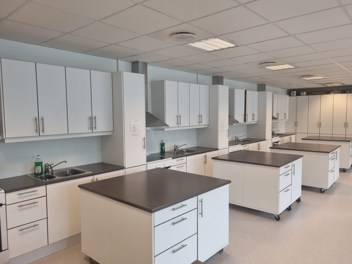 Kapasitet ca 50 personer. Utstyr: 10 bord og stolar + skolekjøkken utstyr.