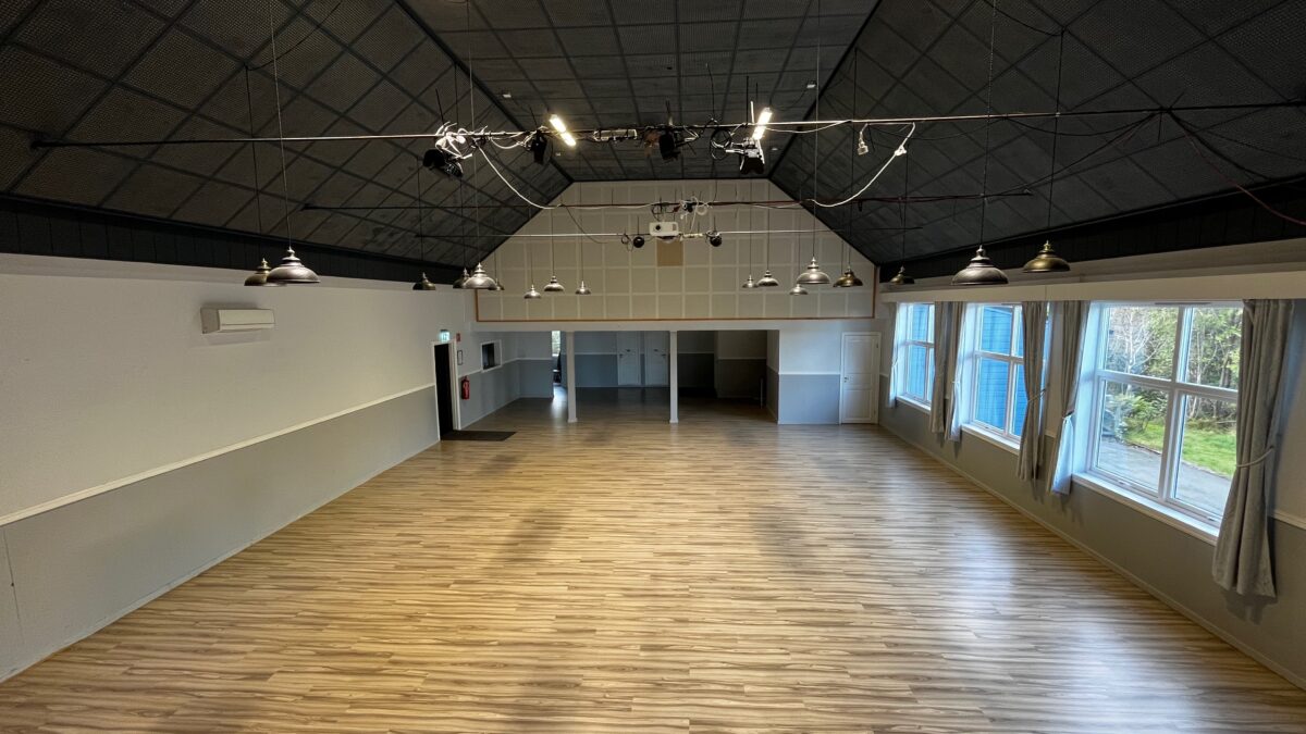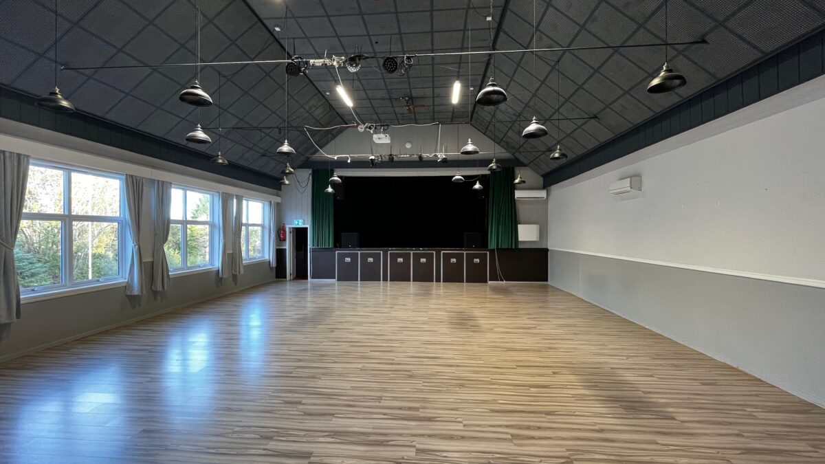 Heiarvang forsamlingshus har 2 sale til leje, hovedsalen og kælderhallen.