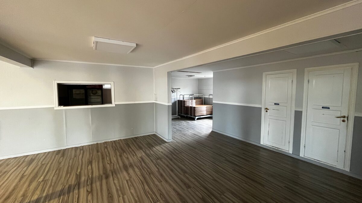 I storsalen er det 4k projektor, musikkanlegg til utleige(tilleggstjeneste) med tilkobling for mobiltelefon/pc/nettbrett via bluetooth og AUX kabel, toalett, kiosk/bar avdeling med vask og kjøleskap, garderobe og ein stor scene.
