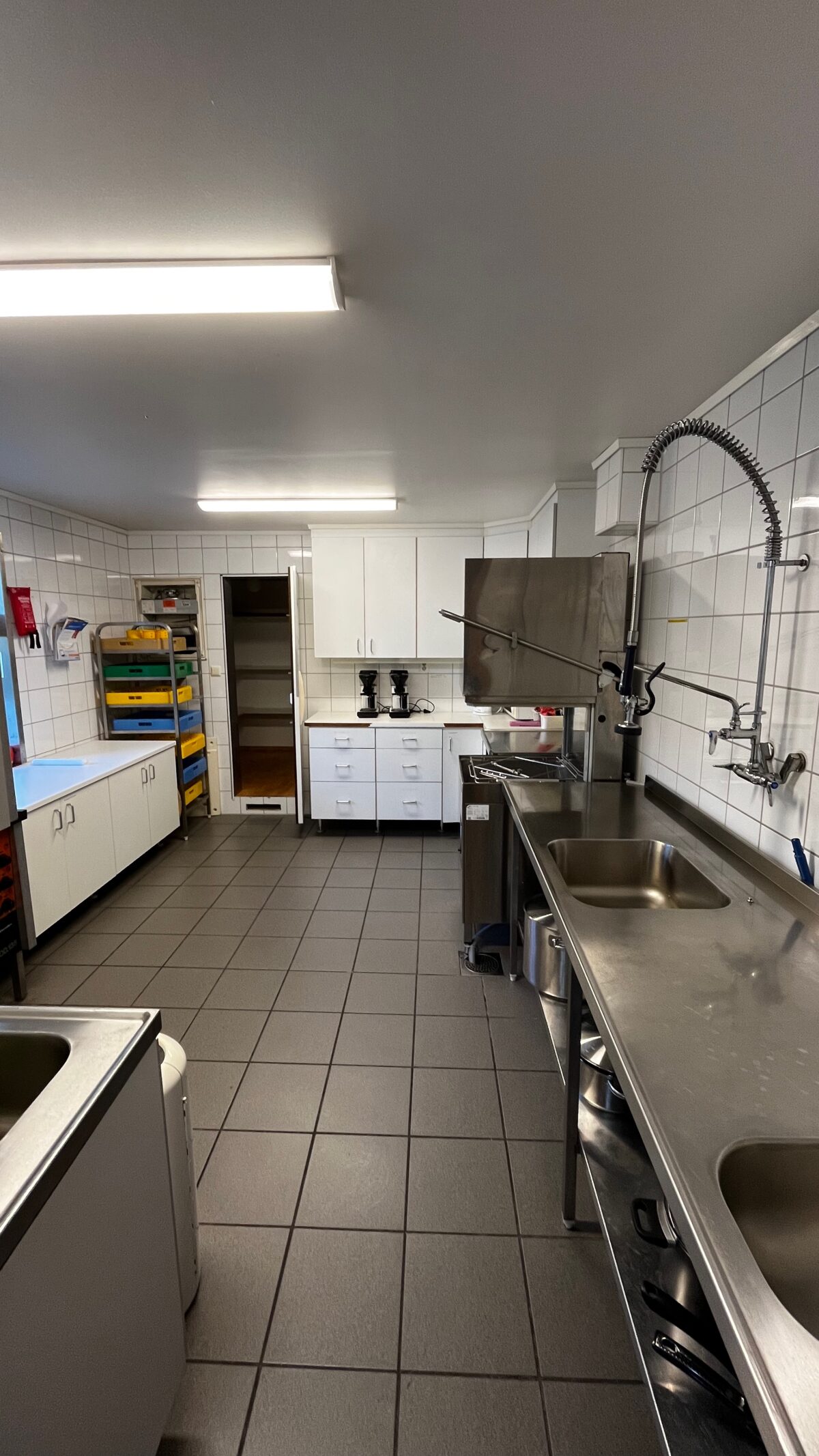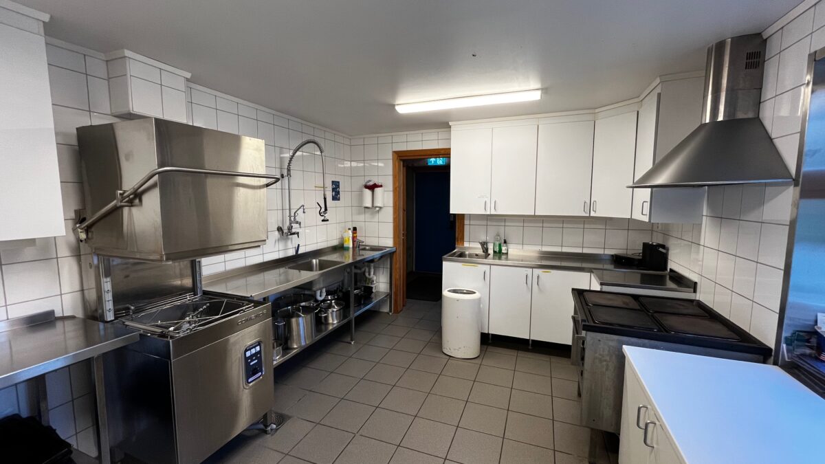 Kjøkkenet er greit utstyrt med komfyr, stort kjølerom, kaffitraktarar, oppvaskemaskin og fryser. I skap og skuffer er der dekkjetøy som fleire typar glass, koppar, fat og bestikk.
