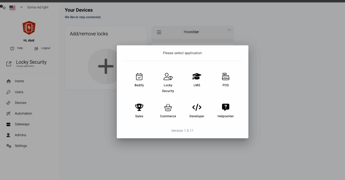 Indtast koden du har modtaget via SMS og afslut ved at trykke på låseikonet for at komme ind i rummet
