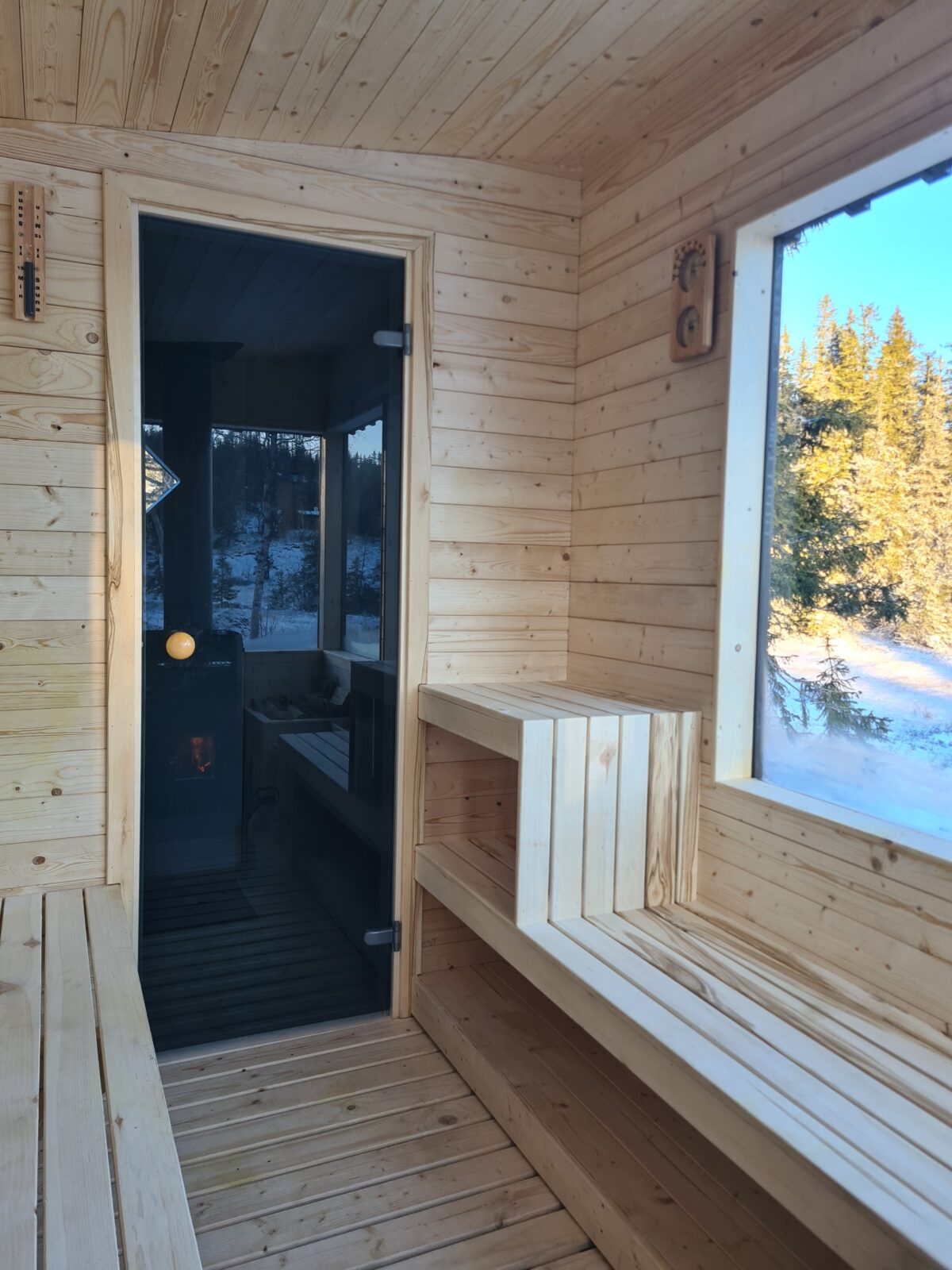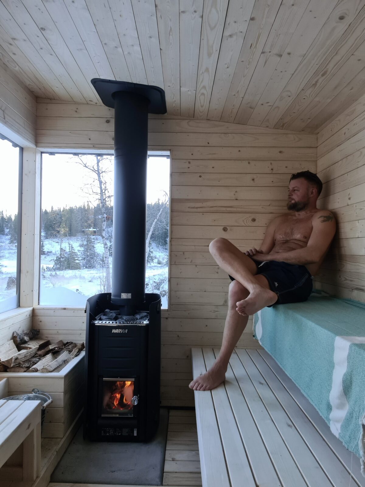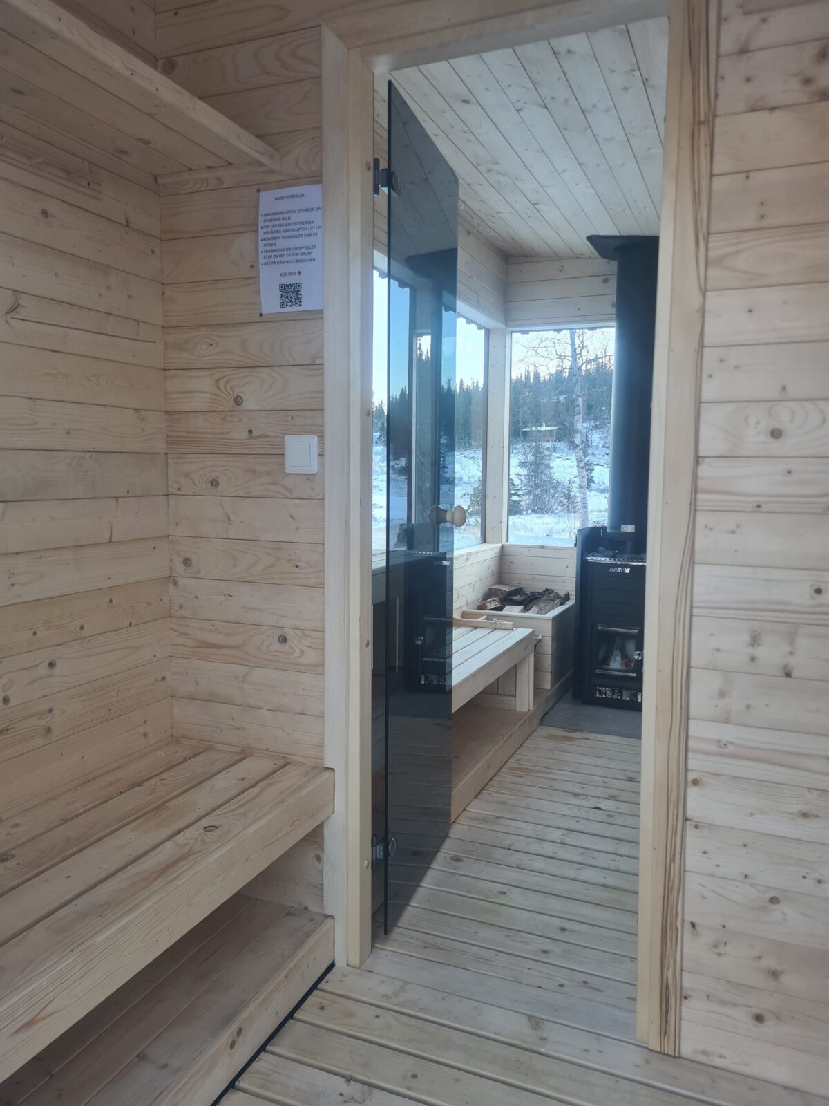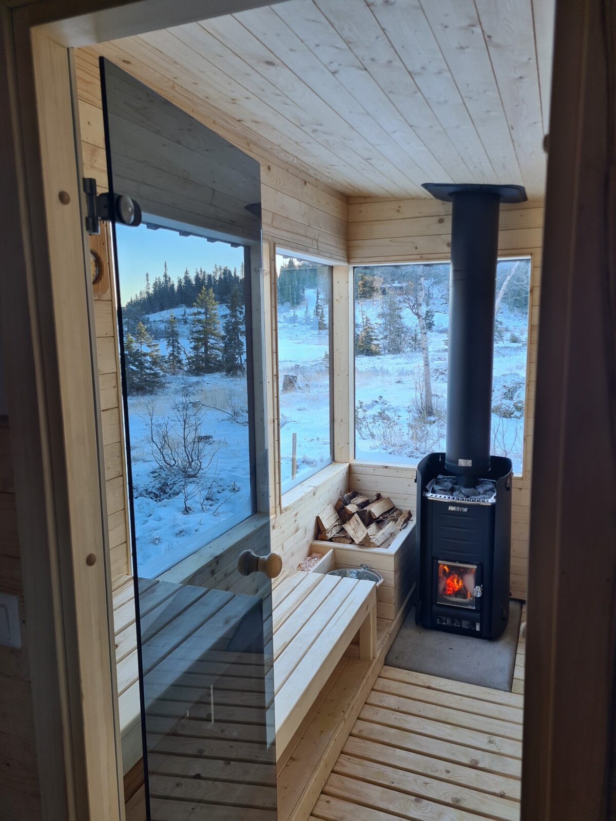 Badstuen blir varm på ca. 30-40 minutter. Om du er først ute den dagen du har booket, kom gjerne en time tidliger for å fyre opp og lage hull isen og få skikkelig varme.