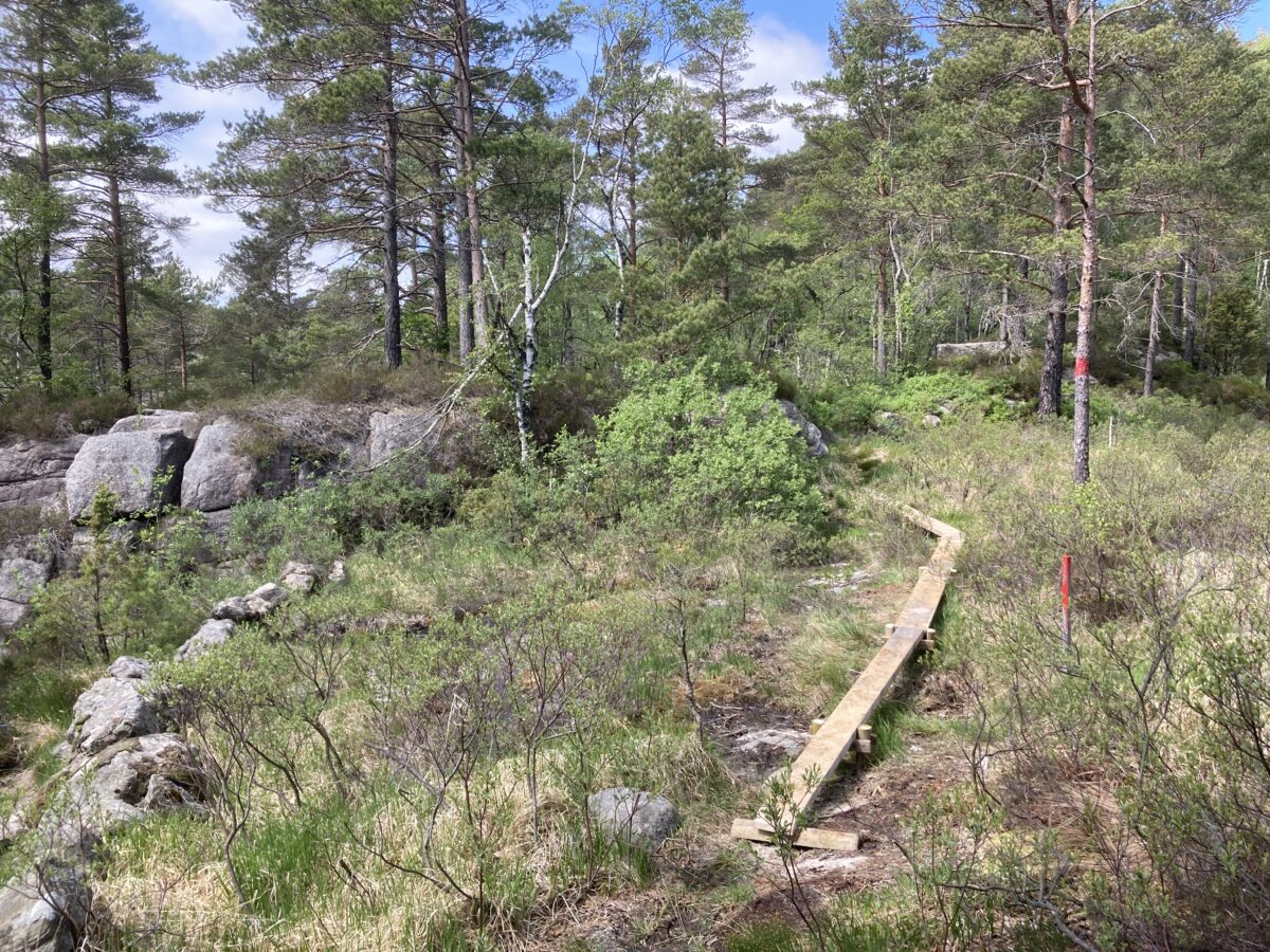 Adkomst fra vei med parkering på Lande opp bakkene fra Opofte. Det er grusvei inn til området, som er en privat bomvei, og ca 2,2 km å gå eller sykle. Veien inn er privat og kan kun brukes til fots eller på sykkel.