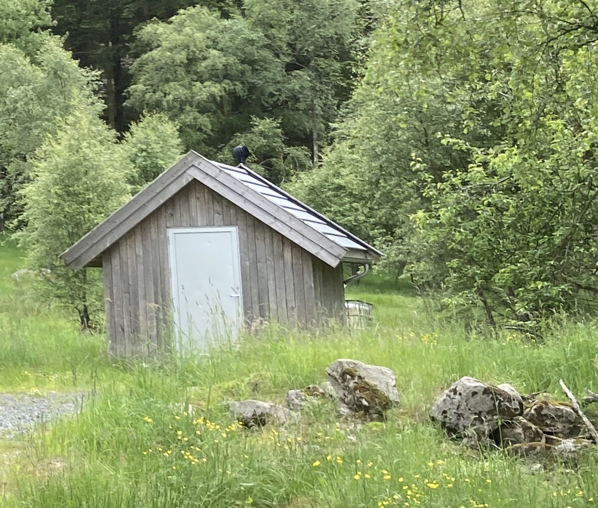 Det et offentlig toalett ca 75 meter fra hytta.