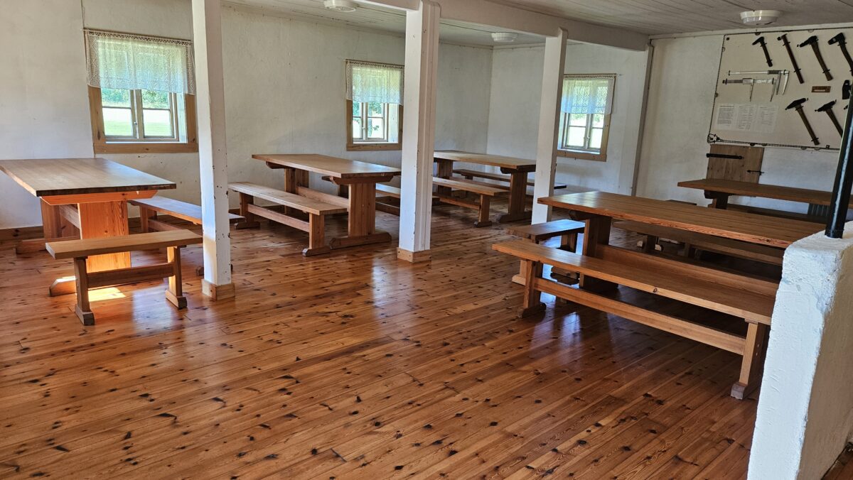 The stable is equipped with benches and tables, and has space for … people. There is no running water or toilet.