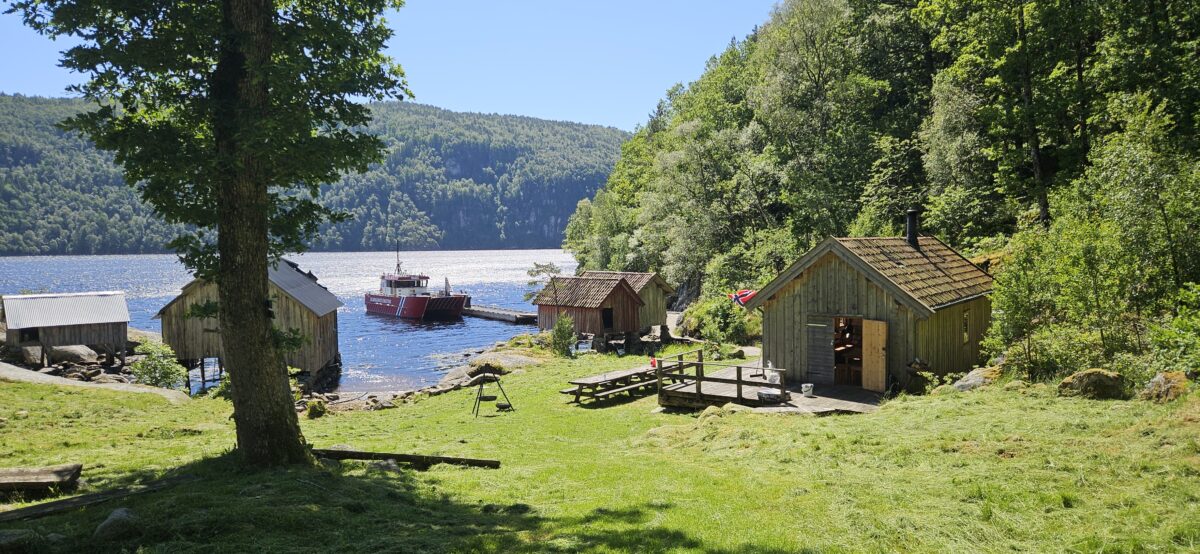 Det er ikke drikkevann på hytta men borehull med rent vann fra håndpumpe ved fellesområde.