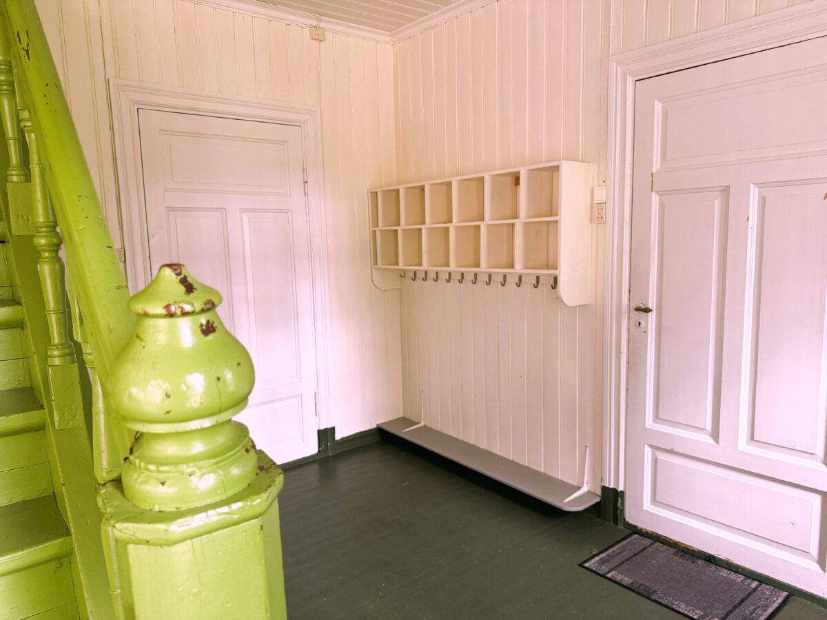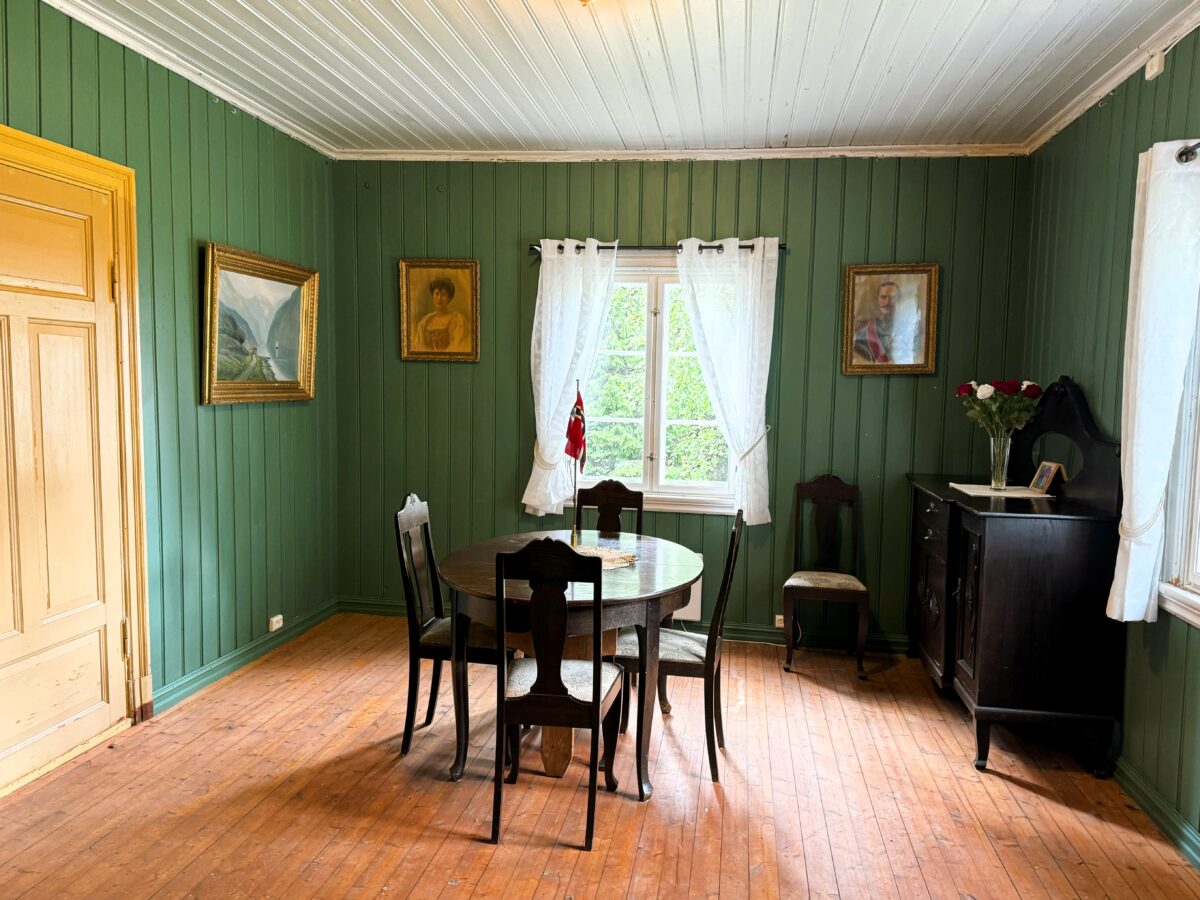 Separat spisestue med eldre spisebord og 4 stoler