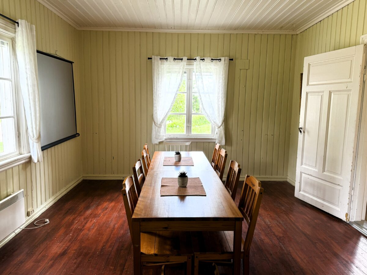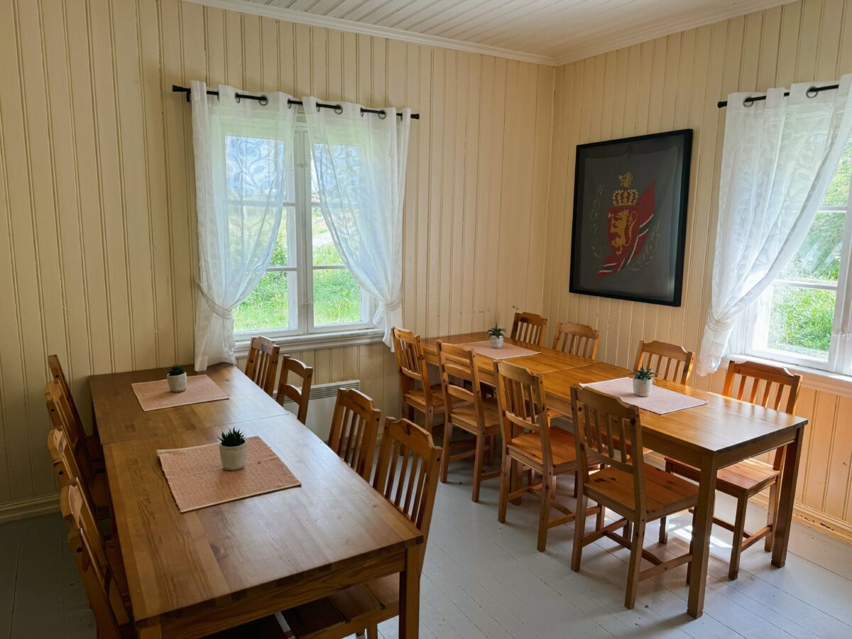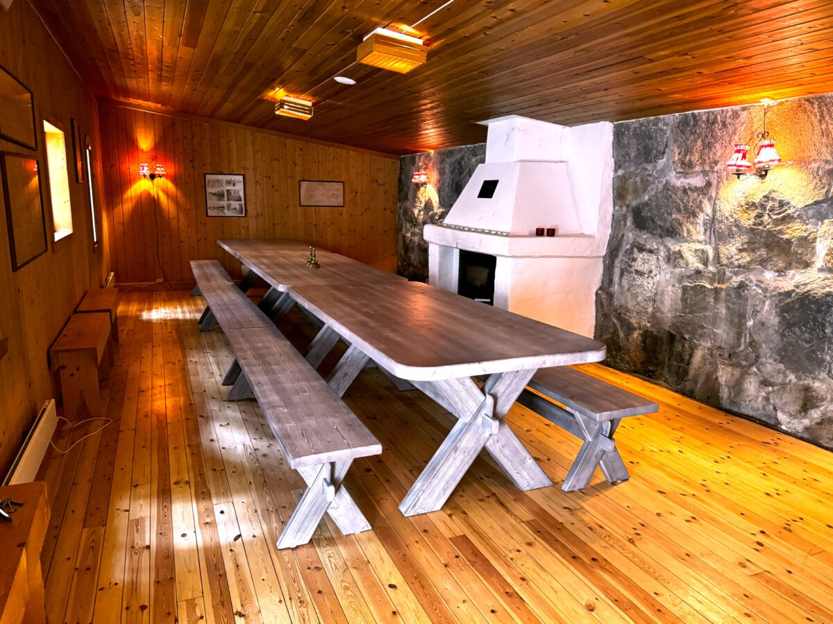 Bygningen er adskilt fra Kommandantboligen. Her er det et stort rom med peis og tilgang på ved for ekstra kostnad. Tre store langbord med 2 benker til hvert bord. Sitteplasser til 8-10 personer ved hvert bord. Plass til 24-30 personer. Panelovner. Ikke WC.