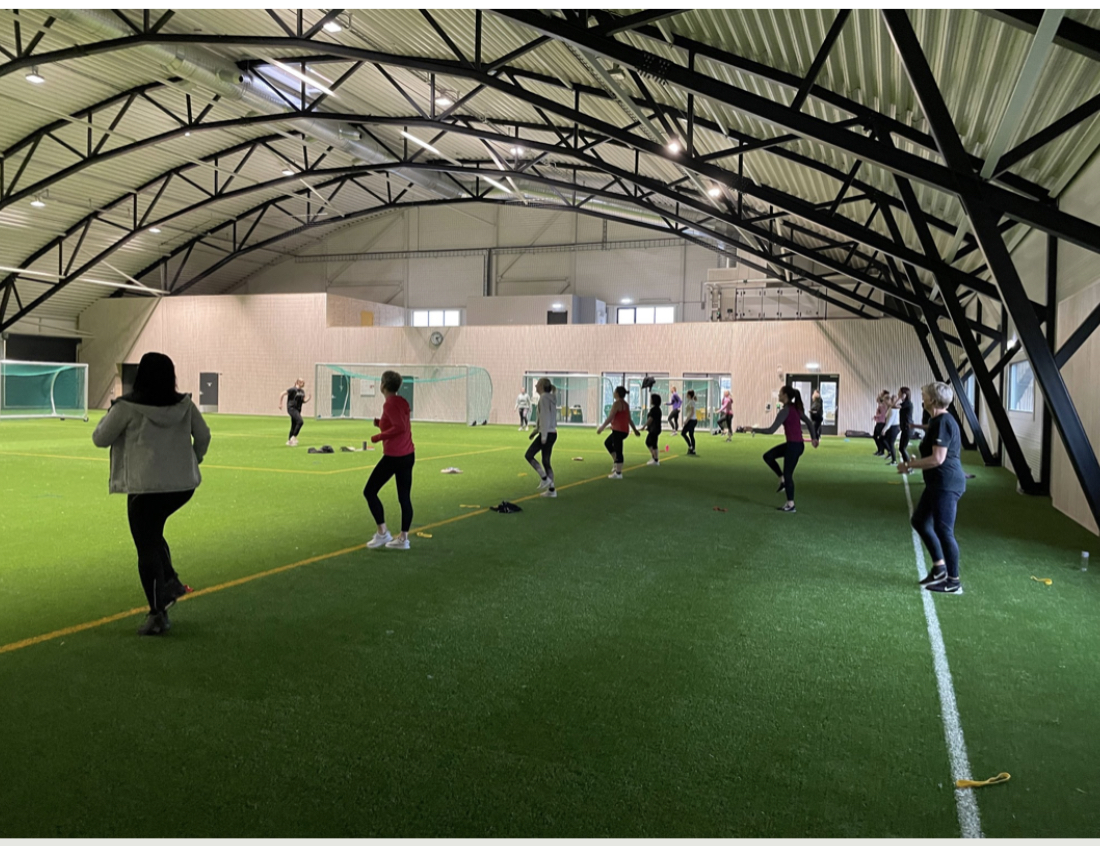 Fotballhallen kan deles i 2 deler med skillevegg.