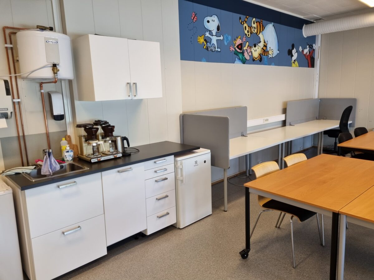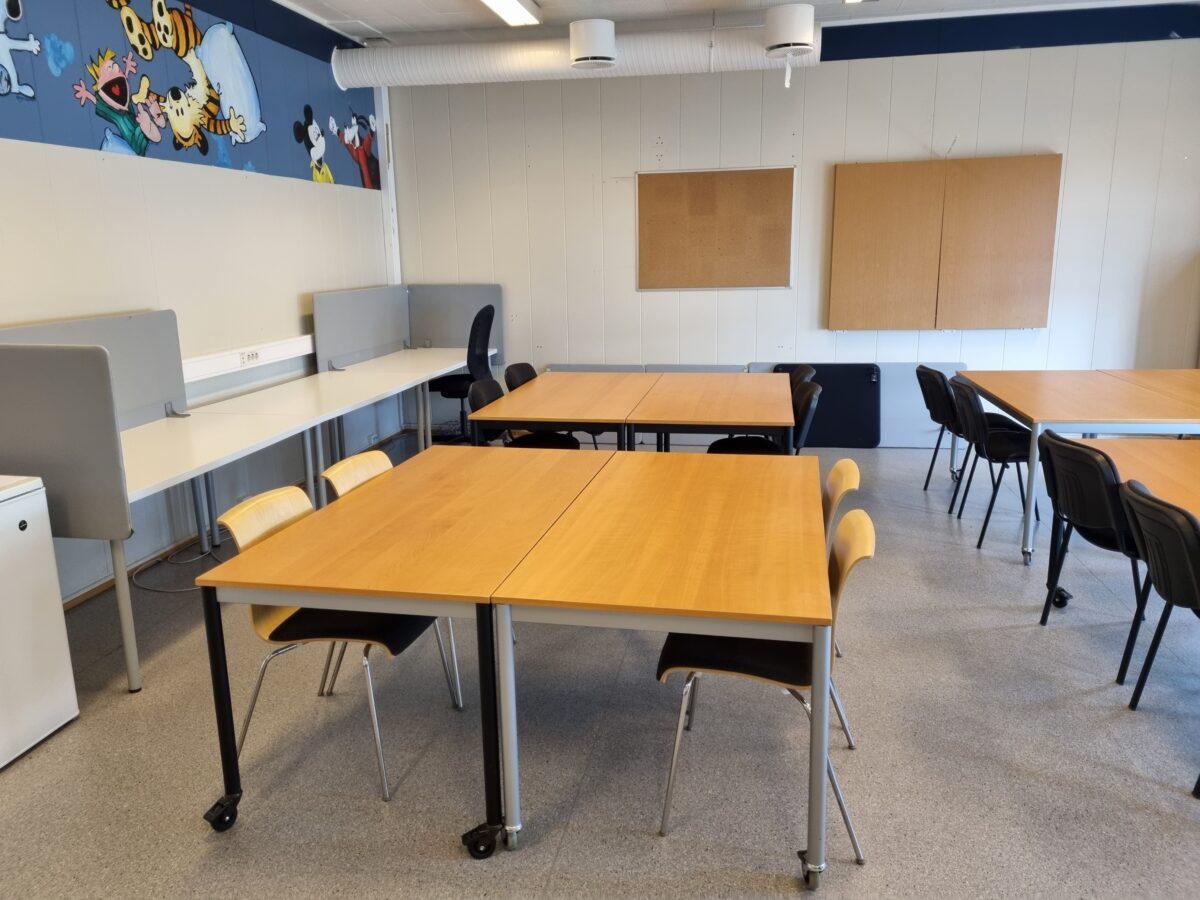 Klasserommet er godt egnet til større møter, kurs eller andre typer samhandling for litt større grupper.