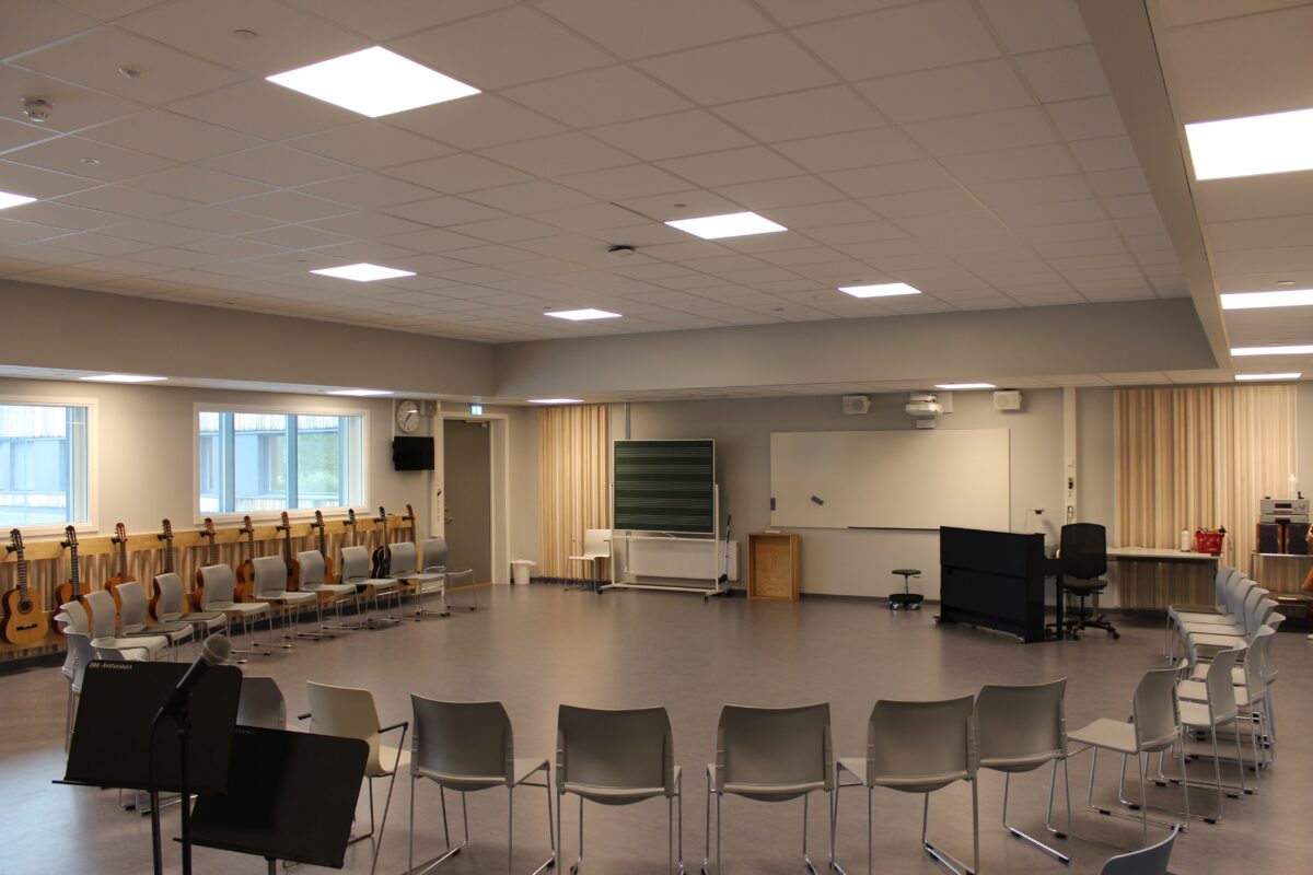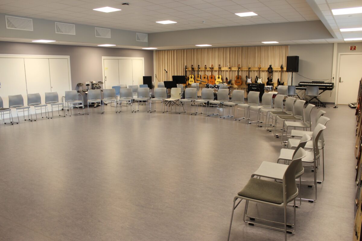 Rommet på ca. 150 m2 leies ut gratis til kor, korps, dansegrupper m.m. og ligger i første etasje på Bjørkelangen skole med inngang fra hovedparkeringsplassen.