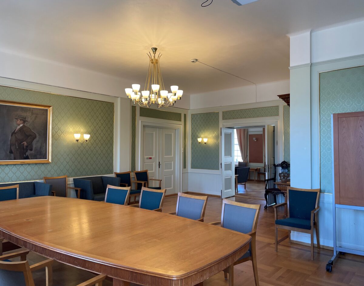Leie av festsalen inkluderer de tilliggende lokalene Lange galleri, Grønne salong, og i tillegg et anretningskjøkken.