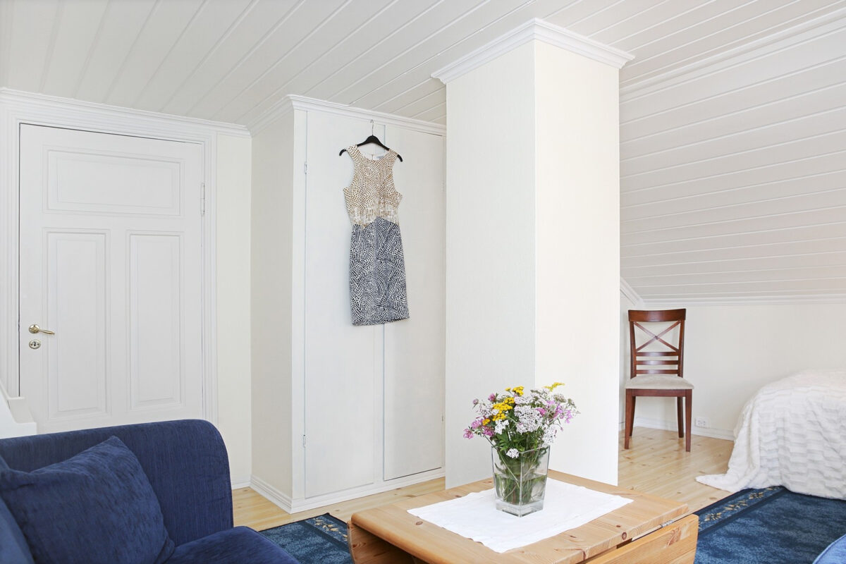 I dag er det i andre etasje to store soverom med 4 sengeplasser. Vi planlegger å utvide til 3 soverom og 6 sengeplasser i medio mai. Se bilder av hovedhuset og eiendommen forøvrig.