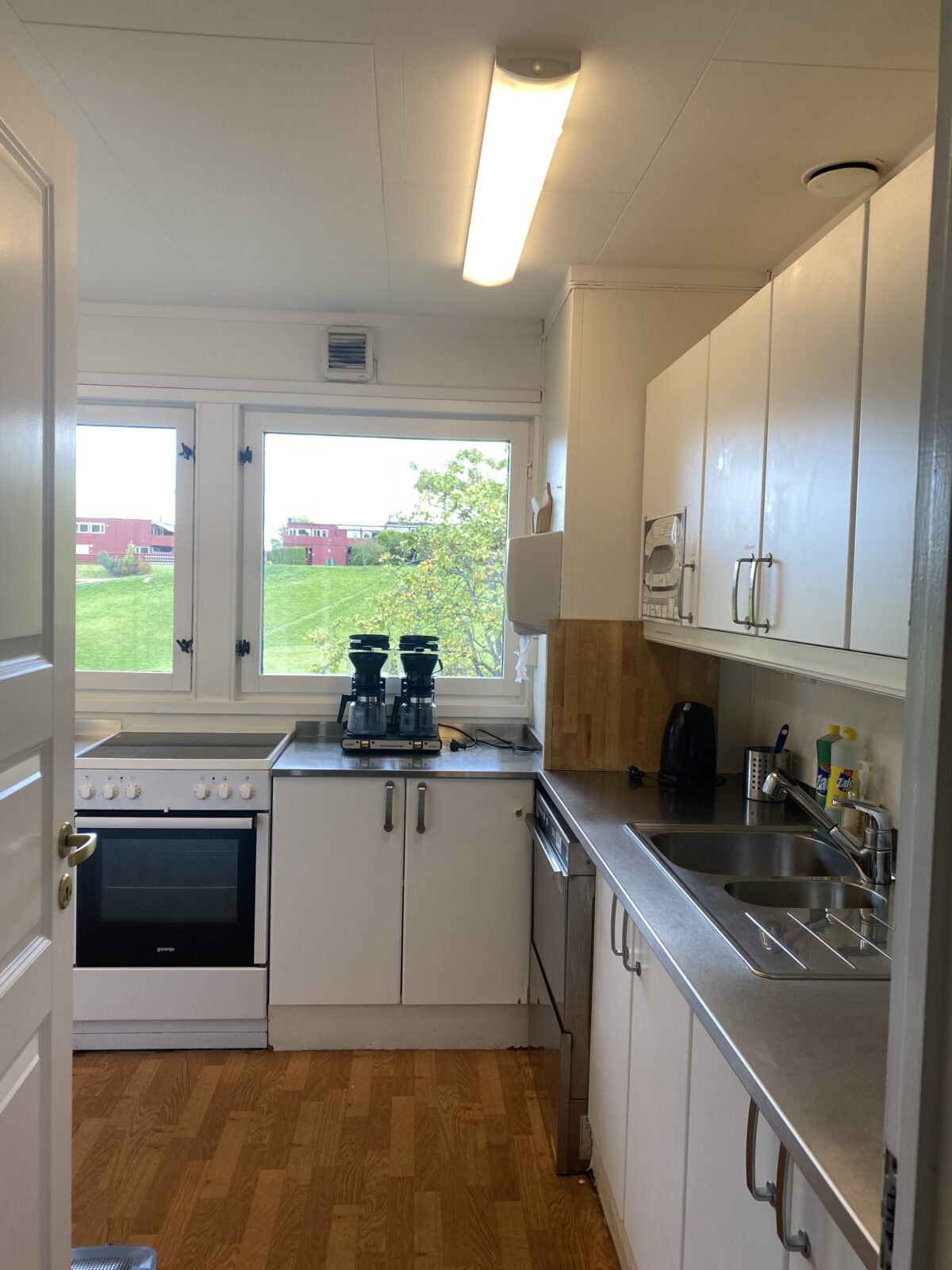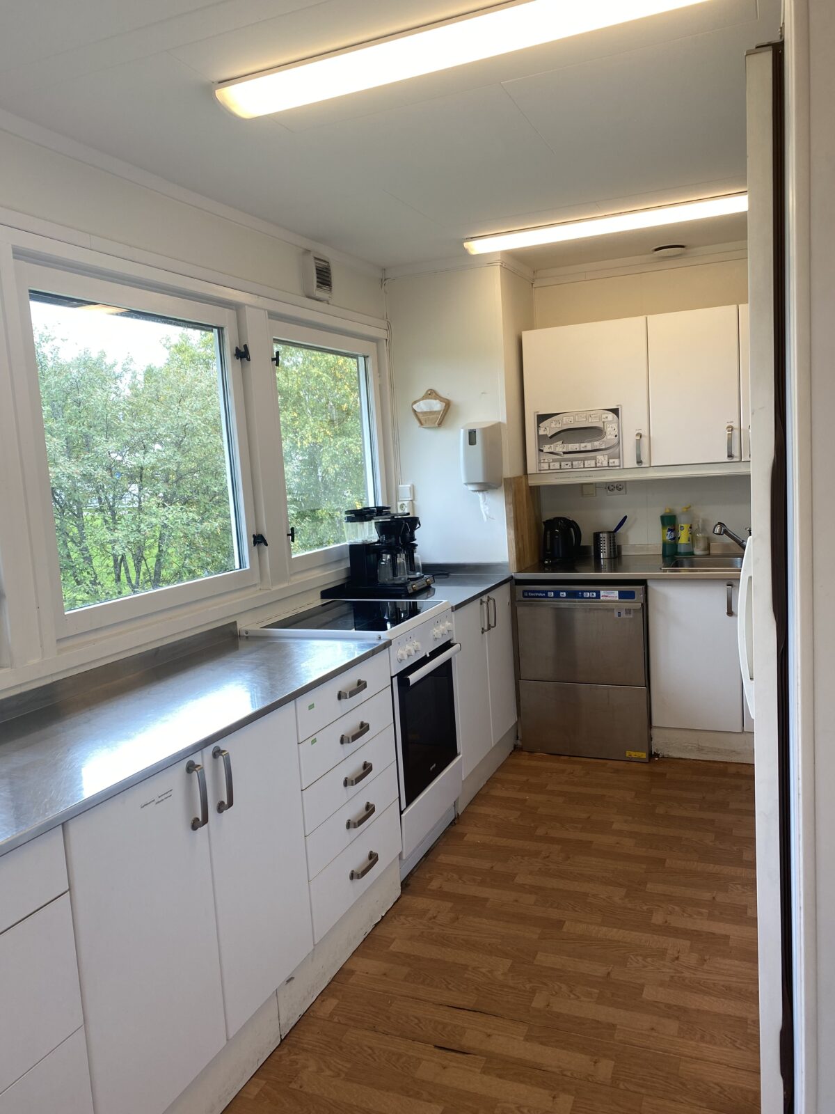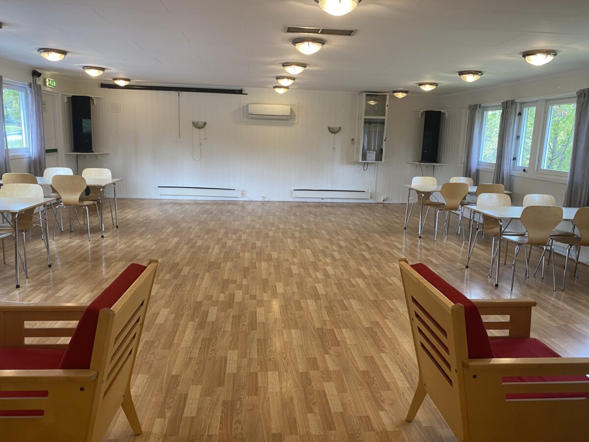 Kök med följande utrustning: Frys, stor kyl, diskmaskin, kaffebryggare och bestick för ca. 50 personer med tillhörande köksutrustning.
