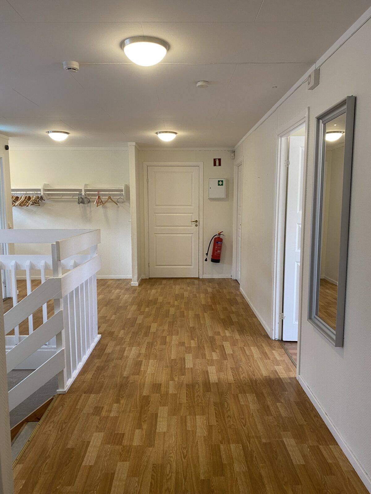 Grendehusets 1:a våning består av ett vardagsrum där du kan duka i ca. 50 personer. Fullt utrustat kök med stort kylskåp. Det finns två toaletter, varav en handikapptoalett med skötbord. Stora hallen har luftkonditionering och musikanläggning tillgängligt med anslutning för mobiltelefon via bluetooth och AUX-kabel. En rullstolsramp och projektor finns att låna.