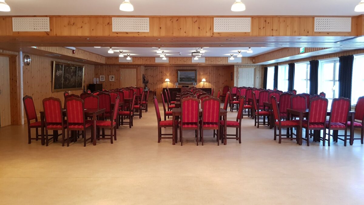 Stallen er utstyrt med benker og bord, og har plass til … personer. Det er ikke innlagt vann eller WC.