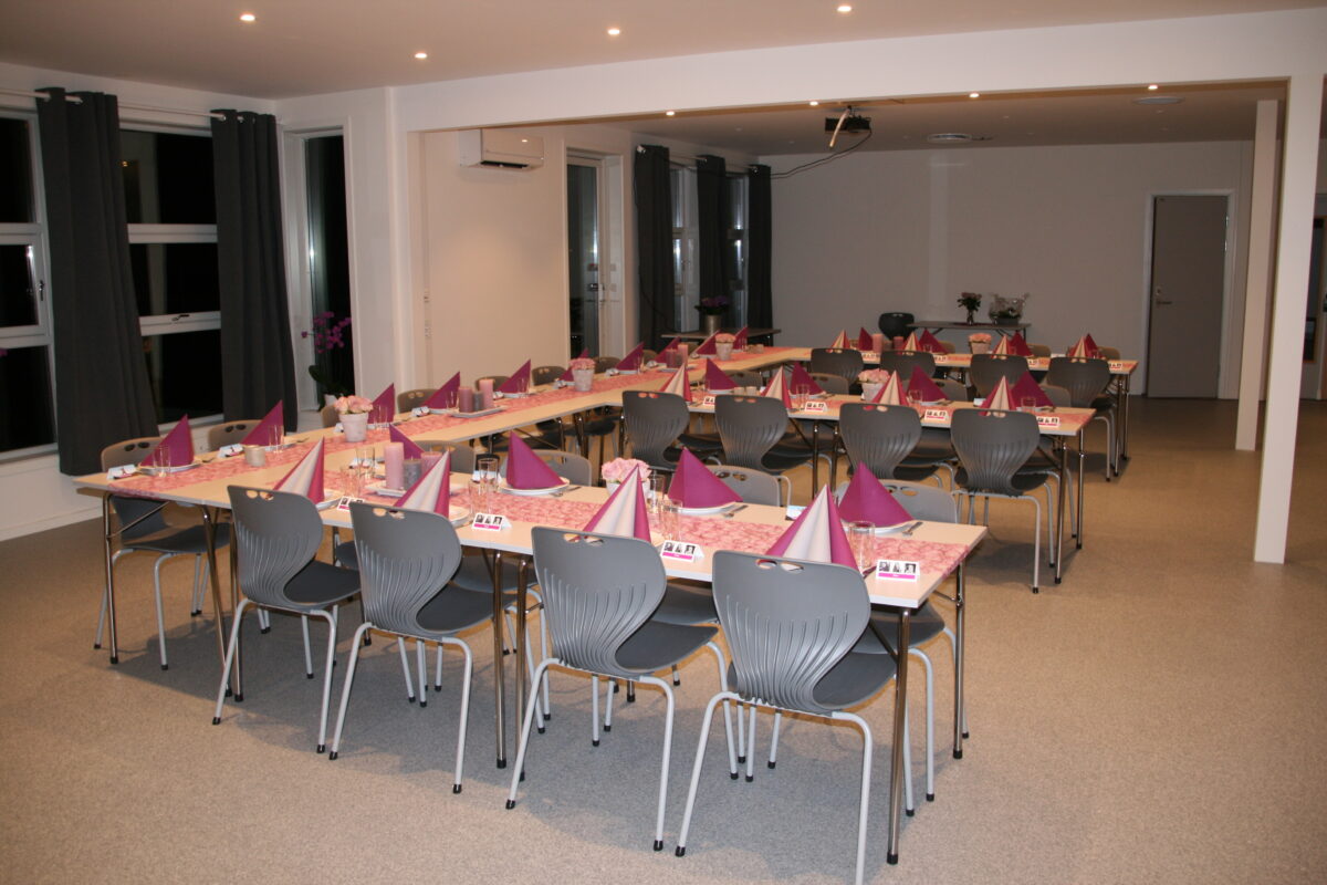 Her finner dere et lyst og fint lokale. Lokalet har bord og stoler til 60 personer. Leietaker kan møblere lokalet slik man selv ønsker.